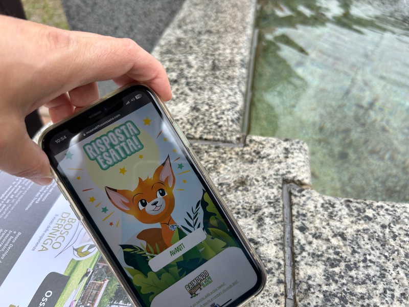 Se i vostri bambini anche in vacanza sono degli irriducibili della tecnologia, niente paura. Qui hanno pensato ad unire dilettevole ad utile, con un gioco interattivo da fare lungo il percorso. Basta un cellulare per inquadrare i QR code! I racconti di Raimondo vi terranno compagnia lungo il tragitto e dovrete mettervi alla prova con quiz e indovinelli. Più vi avvicinerete al Bosco Derniga più curiosità imparerete sul bosco, i suoi abitanti e l’importanza che essi hanno sempre rivestito per gli abitanti del luogo. Otto sono le tappe: troverete il primo QR code sulla fontana di piazza San Vigilio. I codici per giocare con Raimondo la Volpe Giramondo si trovano lungo il Sentiero dei Sensi. A fine percorso si riceve anche il link per scaricare la mappa e un libretto.