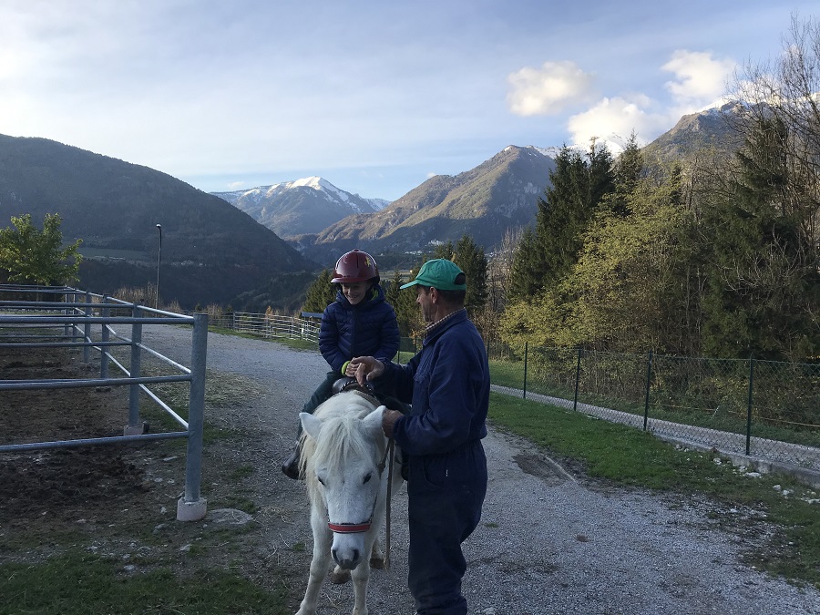 La visita agli animali (pony, cavalli, asini, capre, galline, conigli …) finisce sempre con la possibilità di fare un giretto su un pony o su un cavallo, a seconda dell’età del bimbo. Ma, come dice Bortolo, il giro “va guadagnato”… perciò tutti pronti a spazzolare e sellare il pony (nel nostro caso). E, cosa molto importante, parlare con gli animali per farsi conoscere e prendere confidenza. In questi momenti si percepisce la grande passione che sta dietro a questo lavoro, un lavoro faticoso, ma che regala grandi emozioni.
