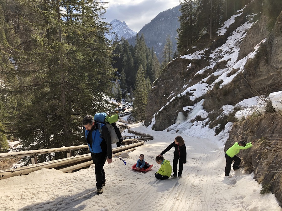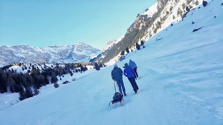 Se avete bambini piccoli, o che camminano poco, vi consigliamo di prenotare il passaggio in motoslitta per salire. Il nostro consiglio per la discesa è invece quello di portare con voi la slitta, per scendere poi velocemente a valle (attenzione alle discese più ripide, ma per il resto molto divertente di sicuro!).