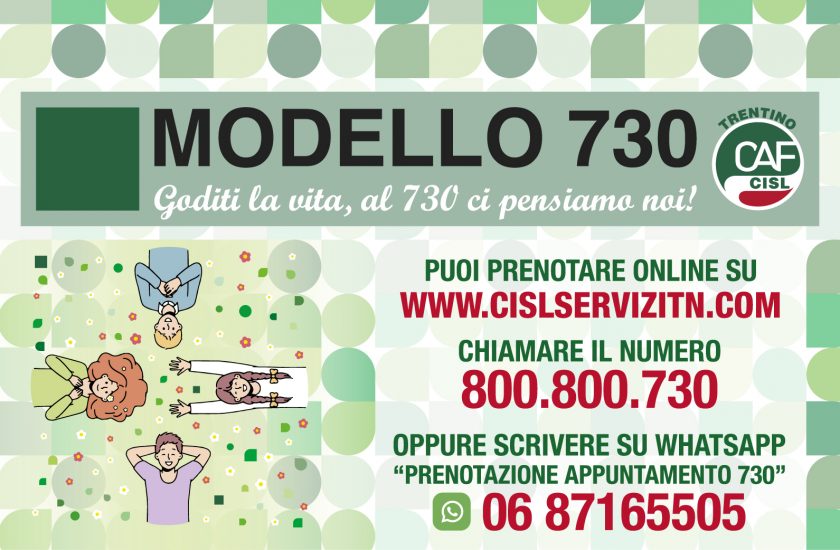 Come ogni anno si sta avvicinando il momento della dichiarazione dei redditi ed è per questo che è sempre meglio essere aggiornati su novità e scadenze. Per far ciò ci viene in aiuto il CAF CISL del Trentino dove potete prenotare il vostro appuntamento per la vostra dichiarazione dei redditi!