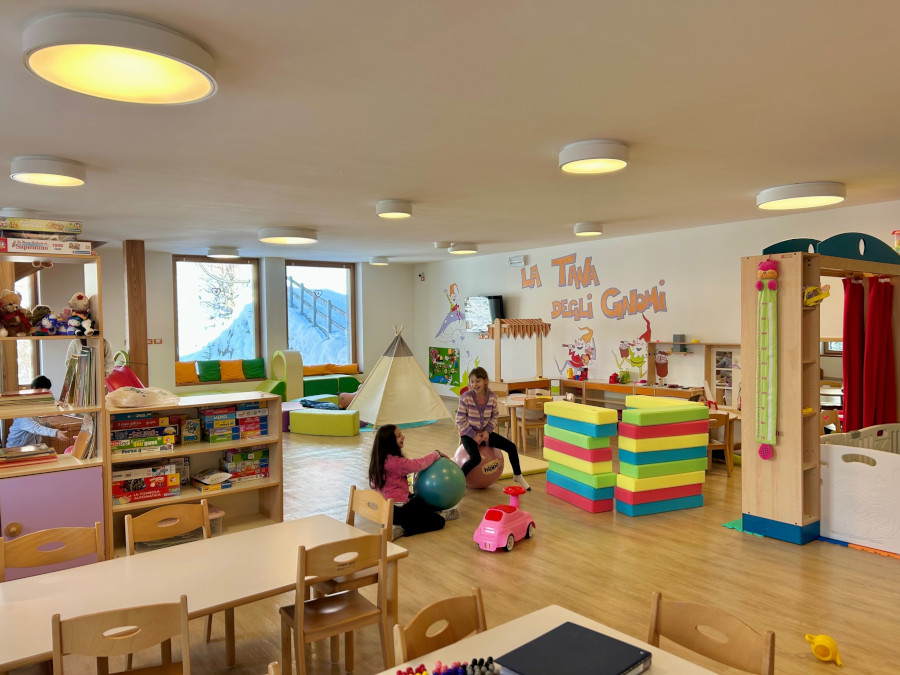 Nella ski area Alpe Lusia a Bellamonte (in località Castelir, poco distante da Predazzo) si trova la bella struttura rivestita in legno che ospita La Tana degli Gnomi, una rinnovata play area dove tutti i giorni i bambini vengono accuditi ed intrattenuti con attività diverse e laboratori creativi da personale qualificato. Il centro è aperto da inizio dicembre, anche in caso di brutto tempo, con orario continuato dalle ore 9.00 alle ore 16.00.