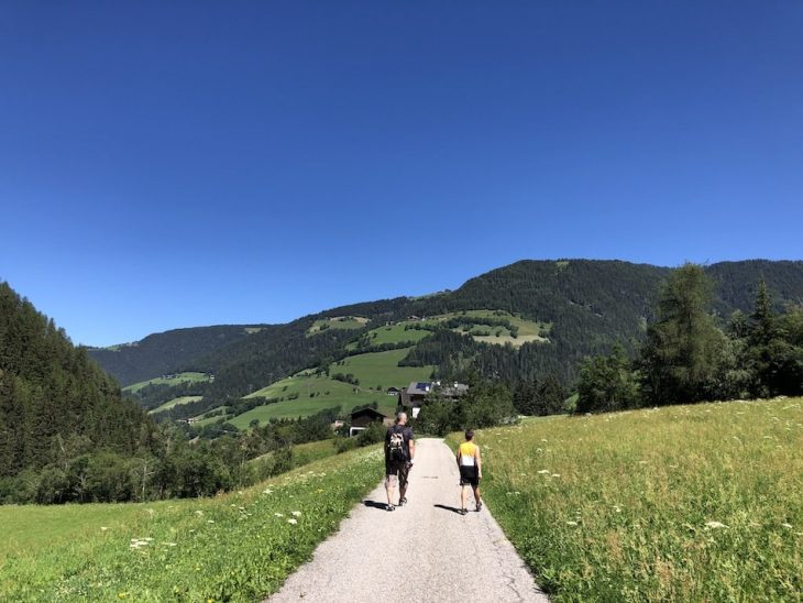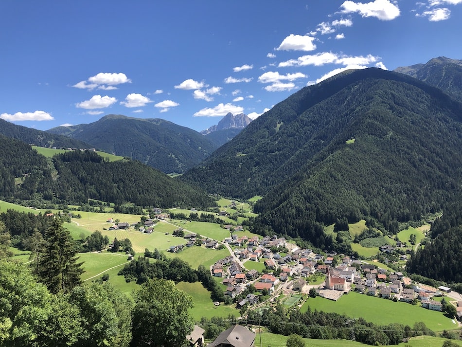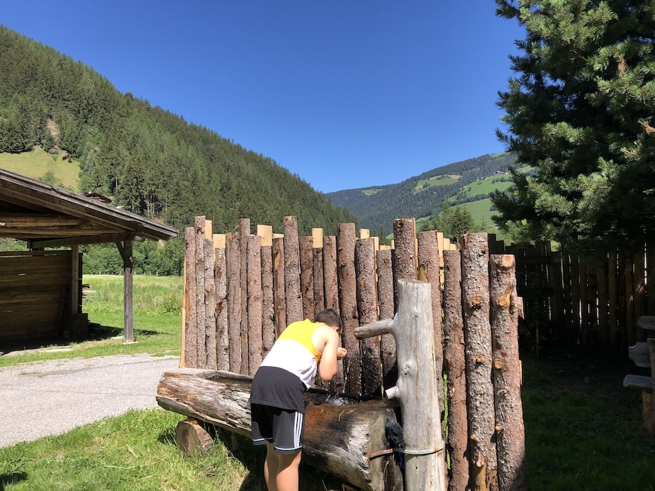 Da qui salendo si prende per l’Hotel Lüsnerhof che permette una bellissima vista di Luson e sulle cime che la circondano. A scelta si prosegue per il bosco verso il punto panoramico Zalner Leiten oppure lungo la strada, dall’Hotel Lüsnerhof al rio Gfasebach o, ancora, in discesa, attraverso le case, lungo la strada asfaltata. Il punto di arrivo è ed è stato per noi, come vi abbiamo raccontato, il centro di Luson con l laghetto balenabile!