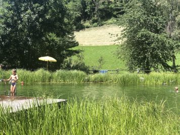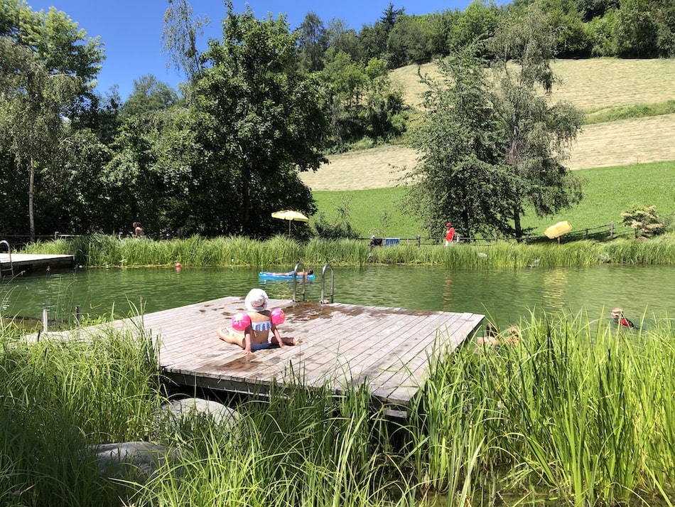 Attrazione particolare di Luson, da noi molto apprezzata, è il laghetto balneabile naturale adatto alle famiglie, alimentato da acqua sorgiva dell’Alpe di Luson. Se decidete di fare una passeggiata o un’escursione non dimenticate di mettere nello zaino il cambio per un bel bagno e vi consigliamo anche un repellente per gli insetti perchè qui ci sono molti tafani e qualche zanzara. Normalmente funziona anche un divertente scivolo che ora, causa restrizioni covid19 è chiuso.
