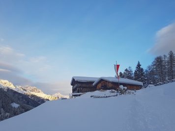 Si sale gradualmente sul percorso ben battuto, poi si entra nel bosco per un po’, fino ad arrivare, in una ventina di minuti, a questa struttura in legno. La malga ha recentemente cambiato gestione: al timone ci sono ora Alex e Katharina. Noi non abbiamo ancora avuto modo di conoscerli, ma abbiamo trovato molte recensioni positive: torneremo a verificare di persona, intanto vi lasciamo comunque qualche informazione utile per raggiungere questo posto incantevole.