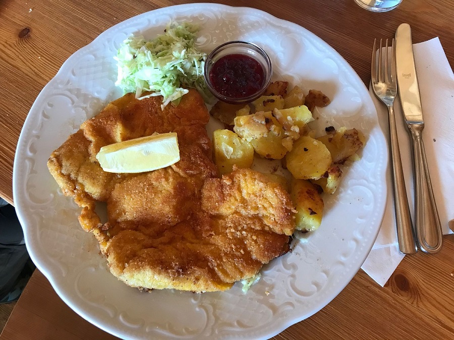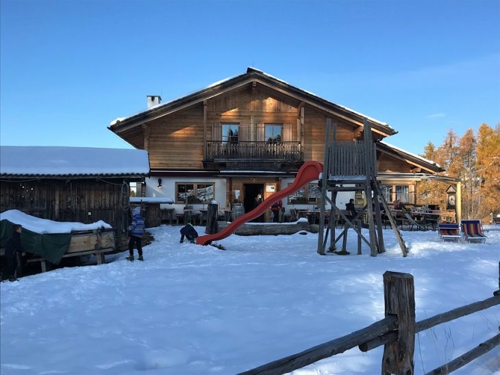 La malga propone i tradizionali piatti altoatesini, wienerschnitzel con patate saltate, (sempre apprezzata dai bambini… ma non solo!) canederli, piatto unico con luganega, crauti e carne salmistrata e come dolci strudel di mele, torta di grano saraceno e mirtilli, torta di prugne, la sacher, … piatti semplici ma gustosi e curati. Questo posticino è stata una piacevole scoperta, ci torneremo di certo anche in estate.