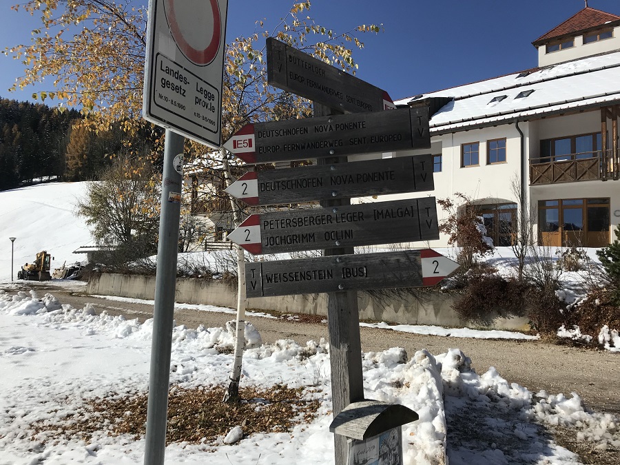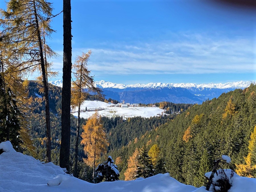 La nostra idea era quella di fare una bella passeggiata e ammirare il foliage autunnale, ma siamo stati piacevolmente conquistati da un paesaggio già imbiancato. Siamo stati a Malga Laab a Nova Ponente, partendo da Pietralba. La passeggiata è molto piacevole e poco impegnativa, impiegherete circa un’ora di tranquilla camminata per raggiungere la malga. E’ aperta tutto l’anno, giorno di chiusura lunedì, da novembre fino a Natale aperta solo i fine settimana. Sempre consigliato chiamare per avere maggiori informazioni. Giunti a Pietralba (un’ora di strada circa da Trento) abbiamo lasciato la macchina nell’ampio parcheggio a fianco dell’imponente santuario. Partendo proprio dal parcheggio imbocchiamo il sentiero in leggera discesa (qui troviamo le indicazioni per Malga Monte San Pietro e Nova Ponente e proprio sotto, il cartello della Laab Alm, indicata anche successivamente). Il percorso è in gran parte pianeggiante con qualche leggera salita. Camminerete tra alti larici, profumate cataste di legna e un paesaggio naturale meraviglioso.
