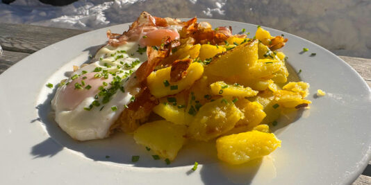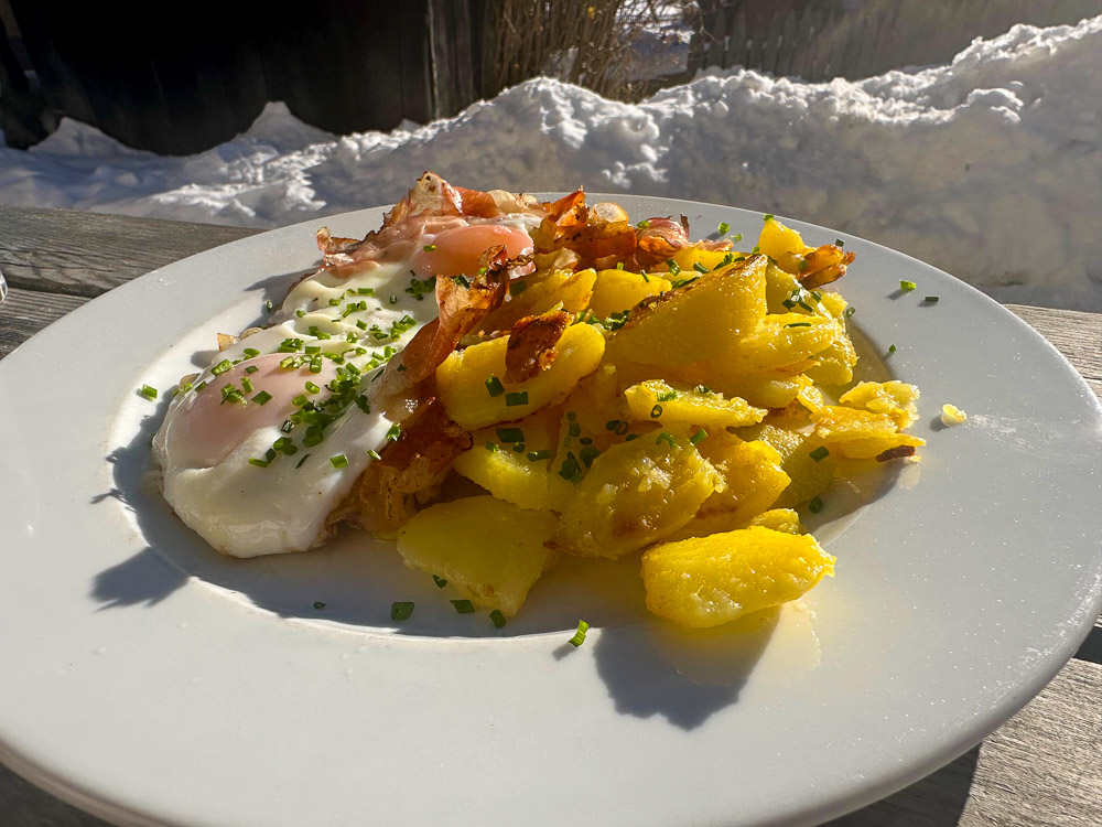 Poche proposte, ma con ottime materie prima. Si va dal tagliere di affettati e formaggi ai tipici ravioli fatti in casa con ricotta e spinaci, canederli di diverse tipologie, cotoletta con patate saltate, ma anche il classico uova, speck e patate. Diversi i dolci, dallo strudel alle torte al grano saraceno.