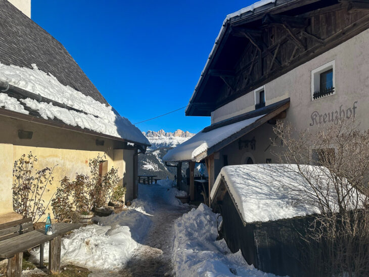 Dopo la visita potrete entrare al maso Kreuzhof (il nome in tedesco), dove nella stube panoramica si possono anche gustare i piatti tipici della cucina altoatesina.