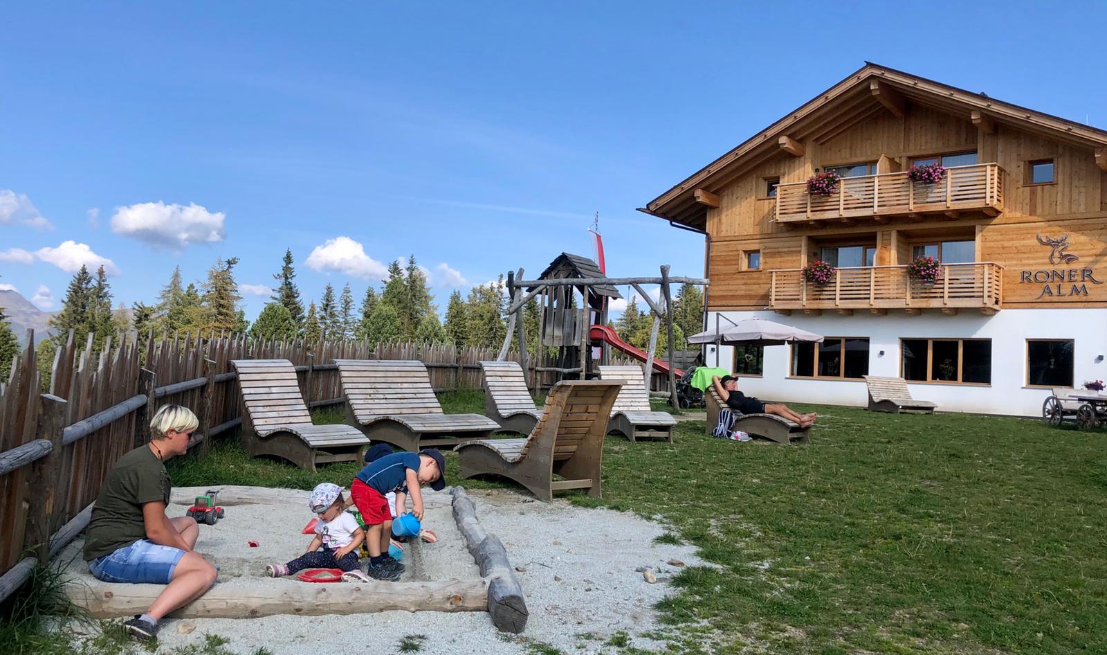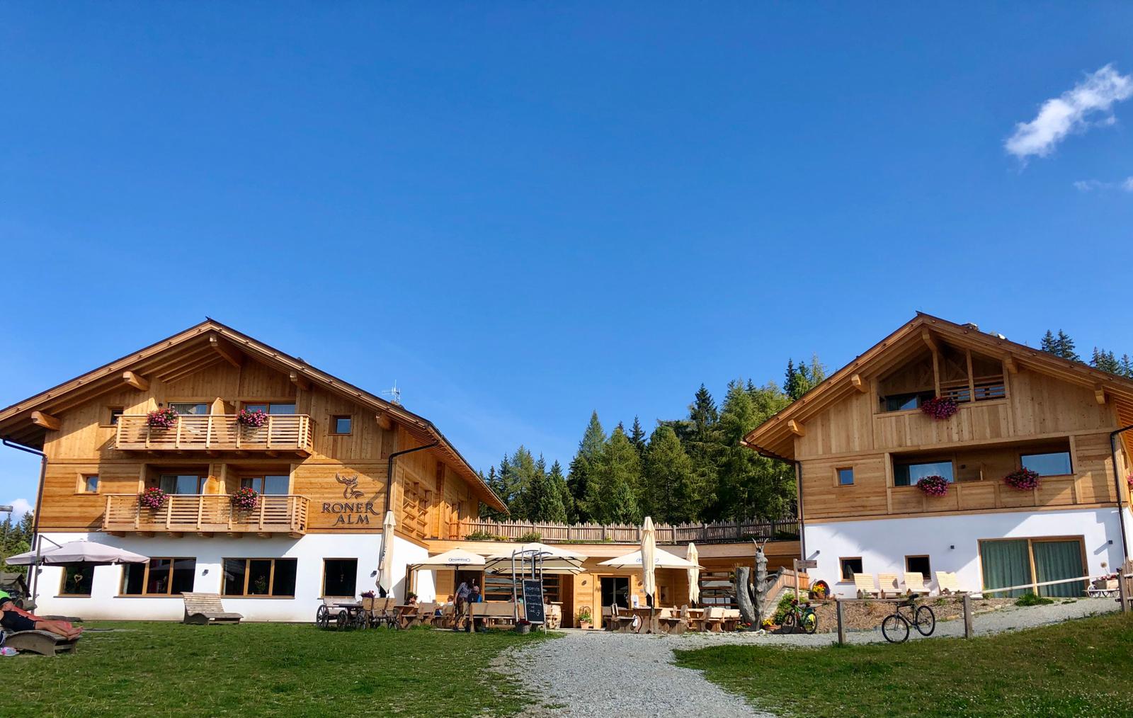 In circa mezz’ora, passando in mezzo a boschi e immensi prati, si arriva al nuovo albergo Roneralm che ha preso il posto della Ronerhütte, con grandi lavori di restauro che lo hanno reso davvero bello ( tel. 0472 546016 – aperto indicativamente da inizio maggio a inizio novembre).