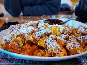 Le porzioni sono belle sostanziose, ma farete fatica a resistere alla tentazione dei dolci che escono dalla cucina e vi passano davanti… noi non ce l’abbiamo fatta e così abbiamo assaggiato il kaiserschmarren, lo strudel classico fatto in casa e quello con la ricotta: tutti da dieci e lode!