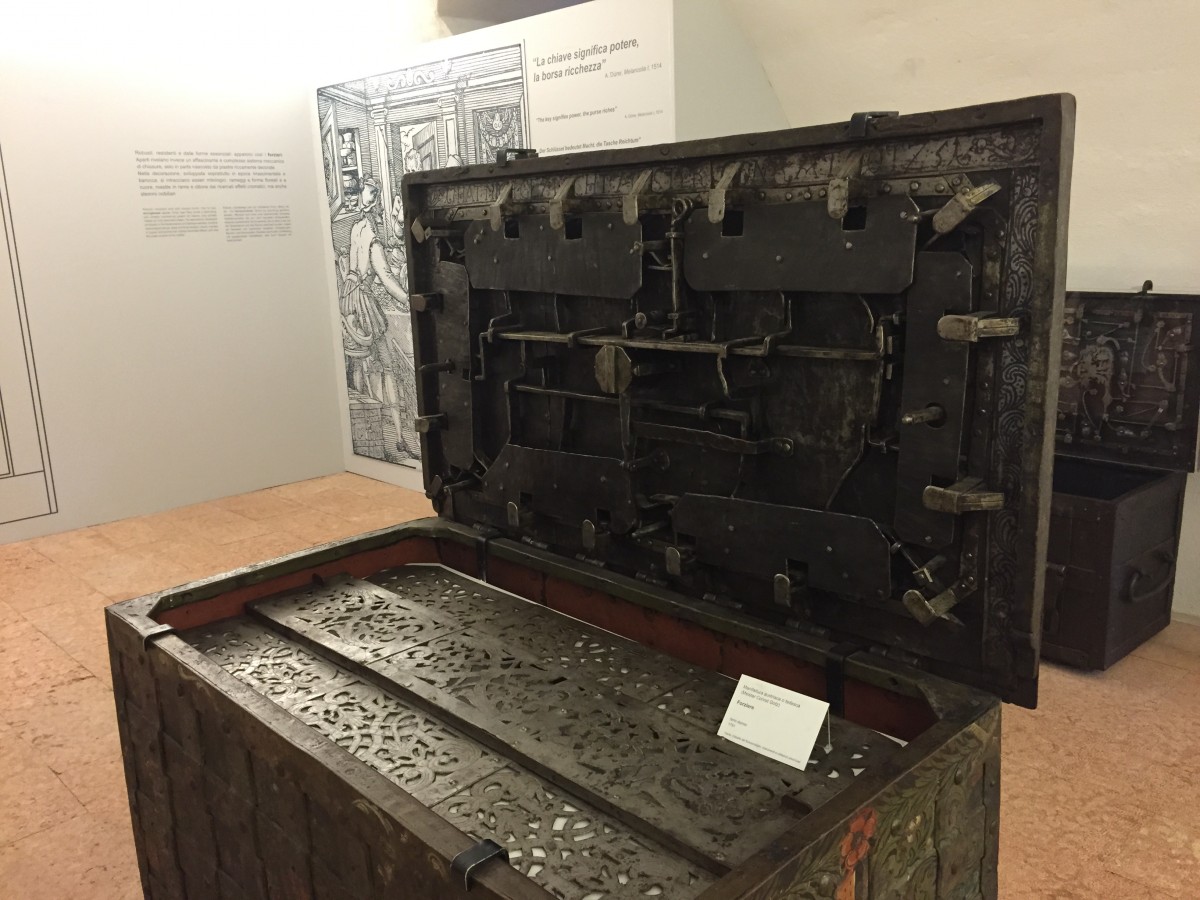 Parcheggiato ai piedi del castello si sale per circa duecento metri e si arriva nella corte, per poi passare all’interno direttamente nella sala in cui sono custoditi i segreti di antichi chiavistelli, chiavi e aperture e in cui si resta affascinati dai meccanismi complessi degli antichi forzieri.