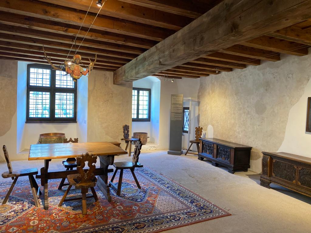Da qui si sale direttamente al piano superiore, dove si possono visitare le stanze e ammirarne l’ottima conservazione, oltre che fantasticare sulla vita che qui si svolgeva. Belli i letti a baldacchino, le testiere e le culle e simpatica la raccolta di stampi per i dolci, per il burro e persino per le carte da gioco “trentine” e per la stoffa.