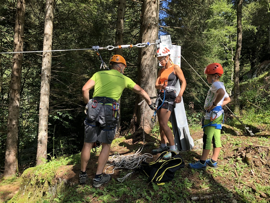 La guida di Mountain Friends sarà con voi lungo tutto il percorso. La prima cosa che farà sarà farvi un piccolo briefing per spiegarvi il funzionamento del kit da ferrata, indispensabile per affrontare il percorso in sicurezza e tranquillità. E via che si parte subito con una prima zip line nel bosco!