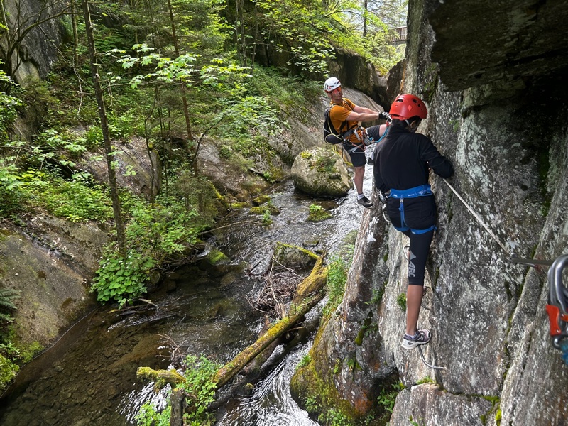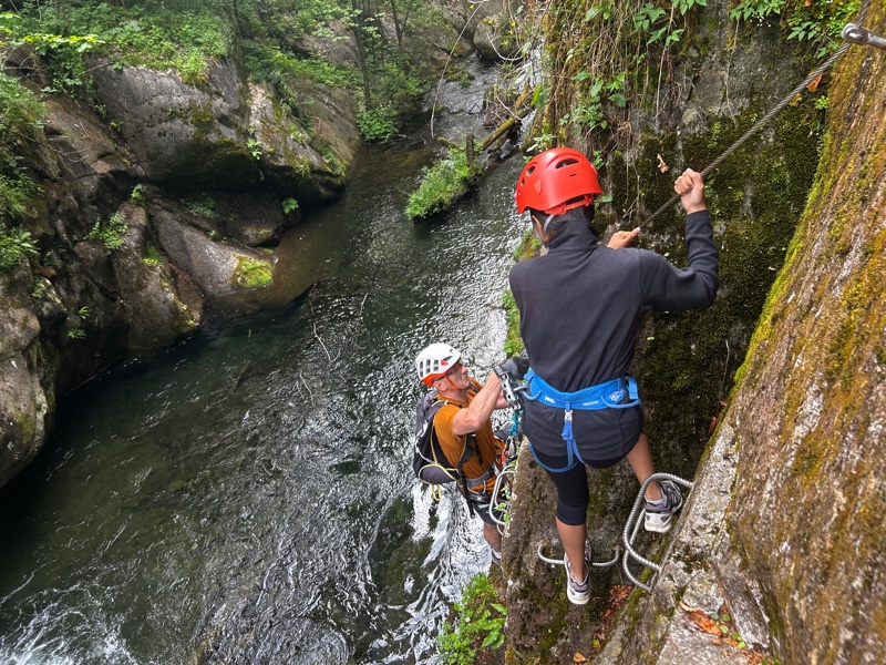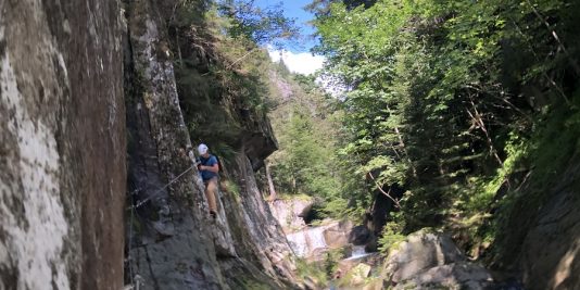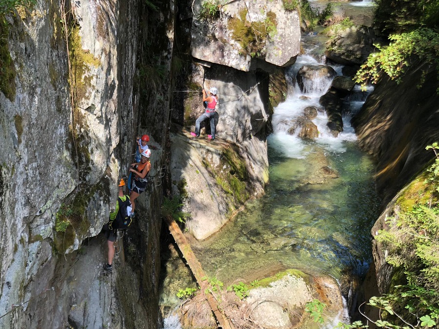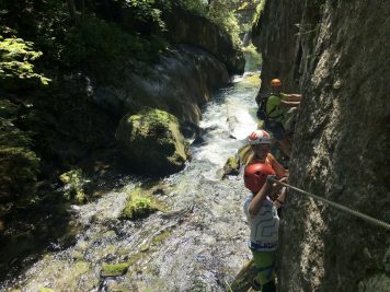 Nella prima parte vi troverete a dover procedere su una parete rocciosa attrezzata con staffe e cordino: sotto di voi le acque impetuose del Chiese! Qui serve un po’ di coraggio, ma anche un po’ di forza nelle braccia! Ma non temete: non mancano i punti dove  riposare un attimo ed approfittare per restare incantati dalla meravigliosa natura selvaggia che vi circonda.