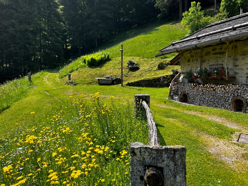 Qui in stagione si coltivano anche mirtilli. Chiedete di farvi vedere la casèra: un antico locale dove veniva fatto il formaggio oggi trasformato in una deliziosa cucina d’altri tempi: camino e lavello in pietra, vecchie credenze in legno e un’atmosfera unica. Alla porta accanto troverete invece il frigorifero naturale, una stanza dove, grazie all’aria fredda incanalata, la temperatura rimane attorno ai 3-4 gradi anche nelle giornate più calde!