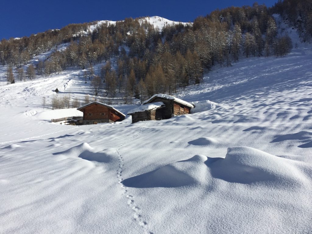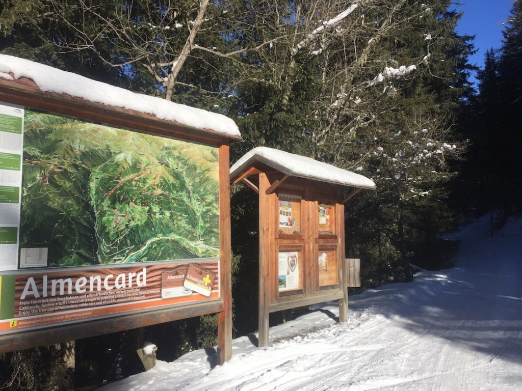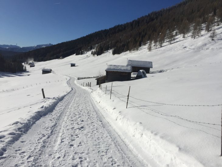 Da qui inizia la strada forestale nel bosco, pianeggiante e a tratti in leggera discesa (perfetta per bimbi piccoli da tirare su bob o slitta), che in mezz’ora circa vi porterà alla Baita Großberghütte, una struttura calda ed accogliente dove potrete mangiare i piatti tipici altoatesini. Se avete voglia ancora di camminare, però (e noi ve lo consigliamo assolutamente!) continuate per un po’ ad inoltrarvi in questa valle disseminata da graziose baite. La strada solitamente è ben battuta, se c’è tanta neve fresca portate con voi le ciaspole!