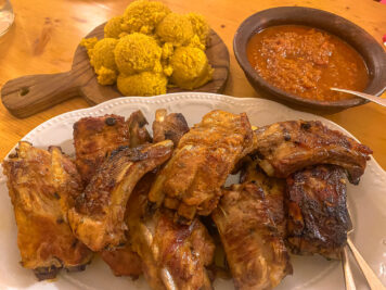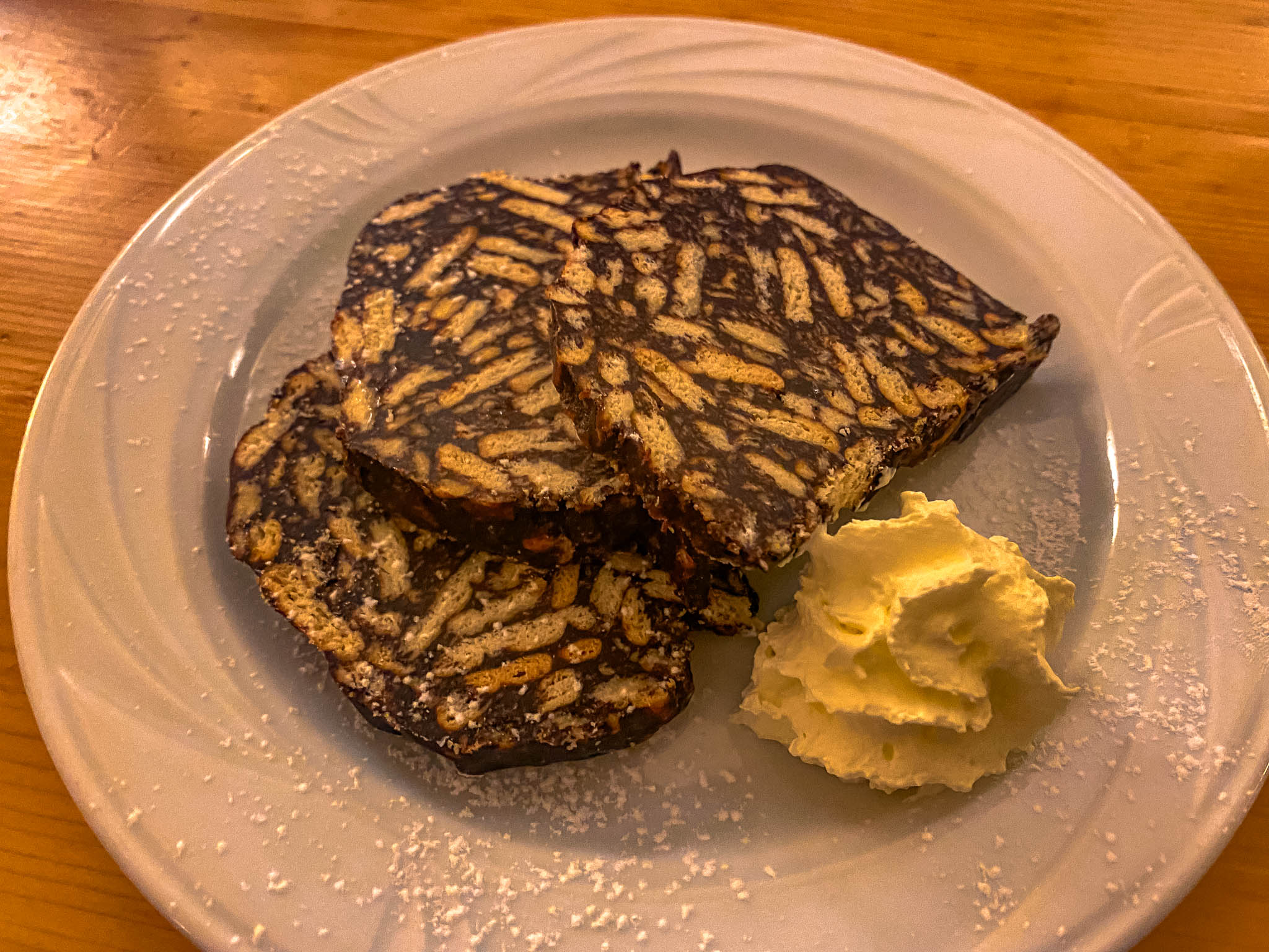 Ottimo la torta di patate con formaggi di malga ed affettati, ma anche i candirli (in brodo o asciutti), le costine con polenta, la mosa (minestra di una volta) e così via,…