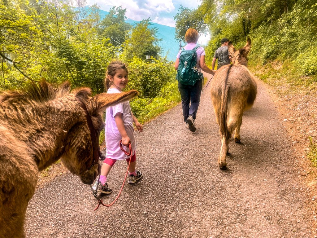 L’incontro tra Alessia, dell’associazione A Ritmo d’Asino, e Nicoletta, anima del Solasna, ha dato vita ad un progetto che è un’esperienza per maturare pensieri belli, per respirare, per emozionarsi: camminare insieme agli asini. In pratica un nuovo modo di condividere la natura, di osservarla, di apprezzarla ad una diversa andatura: a ritmo lento, a ritmo d’asino. Perchè? Semplice: fare un trekking con gli asini vuol dire scegliere di andare al loro passo e rispettare i loro tempi.