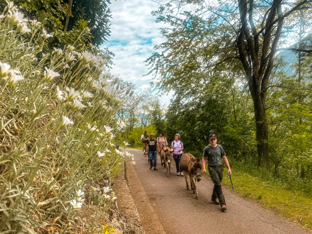 I protagonisti dei trekking, Donkey, Olmo, Sergio e Rangi, sono pronti e – sotto l’attenta guida di Alessia e Dennis – non vedono l’ora di accompagnarvi per le vie e del paese di San Giacomo, a Caldes, in una dolce camminata sull’antica via Romana. Una mattinata in cui si arriverà ai piedi delle trincee e si farà una sosta rigenerante all’ombra di un vecchio gelso. Possibilità di pranzare all’agritur.