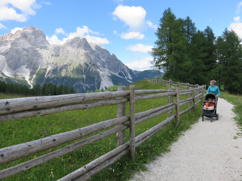 Il sentiero è fattibile anche con passeggino da trekking. Una soluzione interessante che vi proponiamo noi è salire al mattino con la cabinovia per poi intraprendere il percorso a piedi in discesa verso Passo Montecroce al rientro. Passo Montecroce e Moso sono collegati da servizio autobus di linea (che in stagione passa all’incirca ogni mezz’ora).