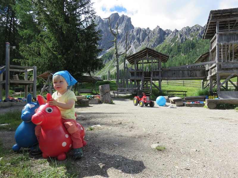 Siamo sicuri che i bambini poi si divertiranno moltissimo anche nell’ampio parco giochi poco distante. Come sempre i nostri cugini altoatesini si sono dimostrati maestri nell’arte di costruire parchi divertimento per i più piccoli. Qui si trova davvero di tutto: dall’alto castello in legno dove arrampicarsi, alla sabbiera con tante formine, all’area costruzioni in legno, passando per la casetta per le bambole, la teleferica, i dondoli e le altalene. Senza naturalmente contare le decine di carriole, trattorini e salterelli a disposizione dei bambini. Un’area gioco da 10 e lode!