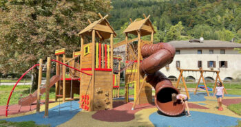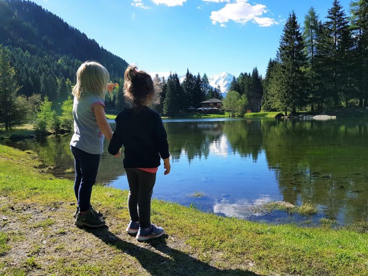 Per chi ha il passeggino, la strada sterrata che gira attorno al lago è comodamente percorribile in un quarto d’ora. Poi prati, giochi per i bimbi e una natura incantevole.