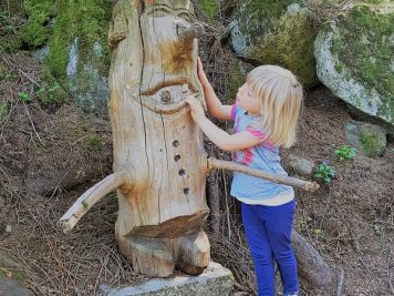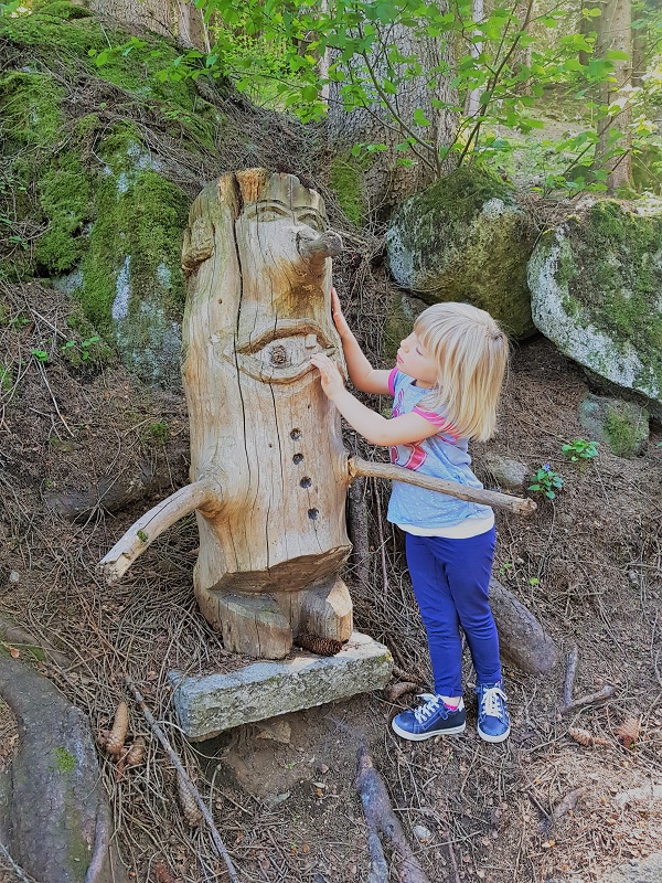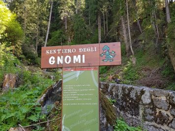 Se avete voglia di camminare potete raggiungere il lago percorrendo il “Sentiero degli Gnomi” un sentiero tematico ispirato agli gnomi della foresta lungo il quale si trovano diverse opere a tema realizzate con materiali naturali. Attenzione però! Il sentiero (non adatto ai passeggini) è piuttosto ripido (circa 400 metri di dislivello, per quasi 4 chilometri di cammino solo all’andata), non sceglietelo quindi se avete con voi bambini non allenati. L’itinerario si intraprende dal secondo tornante sulla strada che porta alla Malga Bassa, Centro Visitatori del Parco.