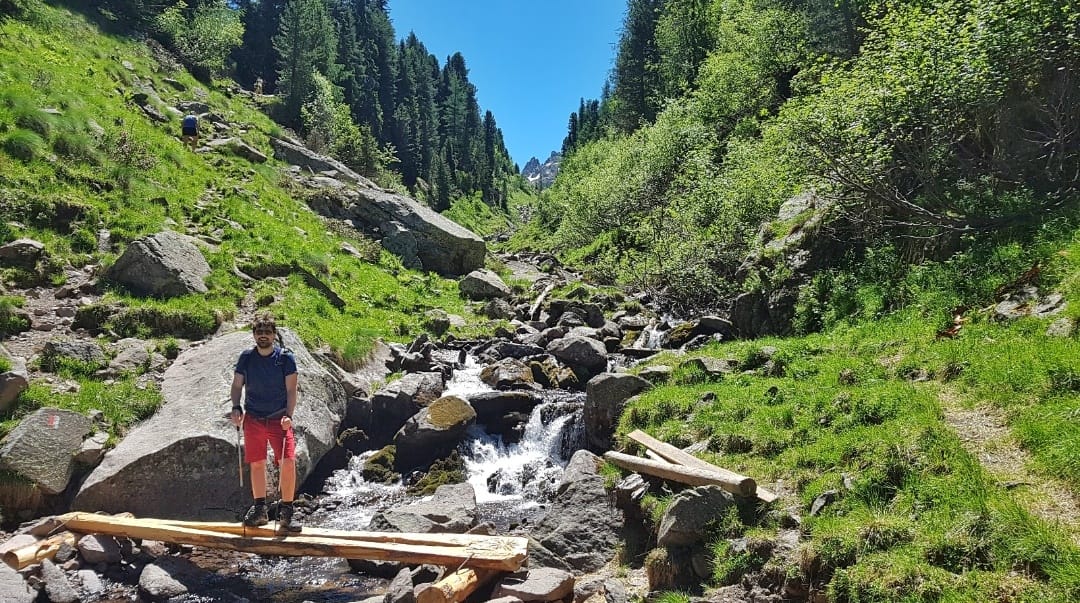 Man mano che si sale, la natura si fa sempre più affascinante e ci regala scorci davvero belli, come il passaggio lungo un piccolo torrentello dal quale si può vedere in lontananza Cima Cece.