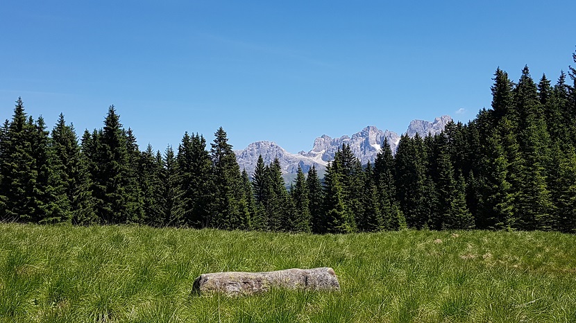 L’itinerario si snoda principalmente tra maestosi boschi nel primo tratto fino a raggiungere una piccola radura. Da qui si prosegue lungo il sentiero fino ad arrivare ai prati dove si trovano i ruderi di Malga Campigolo Grande e si possono intravedere in lontananza le imponenti Pale di San Martino.
