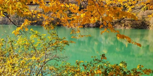 Si lascia l’auto in uno dei parcheggi in loco (quasi tutti a pagamento) e poi si scende a piedi verso il lago percorrendo una lunga scalinata dalla quale si potrà già iniziare a stupirsi dell’incredibile colore dell’acqua. Il Lago di Tenno si trova ad un’altitudine di 550 metri ed è il sesto lago più ampio del Trentino, vicinissimo al Lago di Garda. E’ comunque un lago piccolino e anche per questo in alta stagione può risultare difficile trovare parcheggio. Meglio quindi approfittare e andarci in momenti diversi: l’autunno per esempio, quando il foliage lo rende ancora più magico!