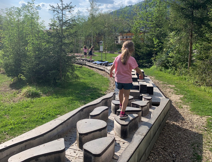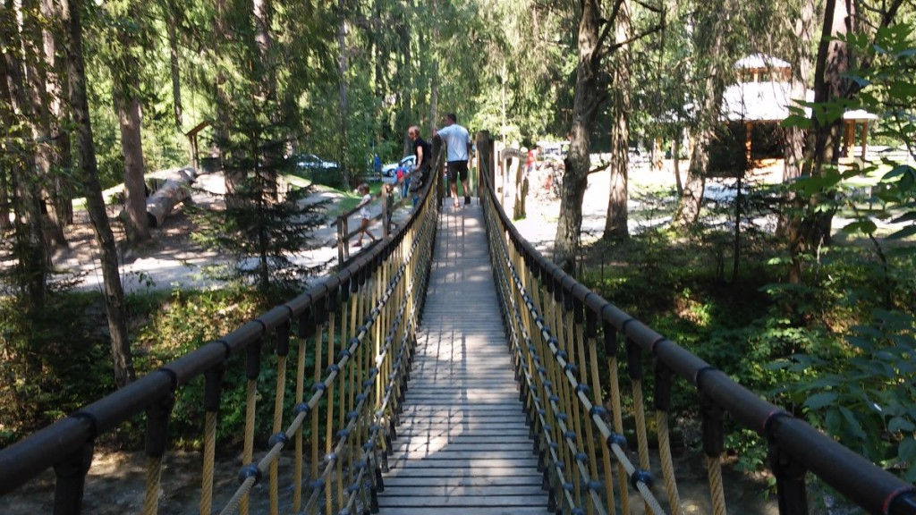 La caratteristica del Kurpark è che è diviso in due aree ben distinte separate da un grande ponte di legno: da una parte i giochi per i piccoli: castello scivoli, sabbiere, teleferiche e altalene. E dall’altra attrazioni per i più grandicelli.