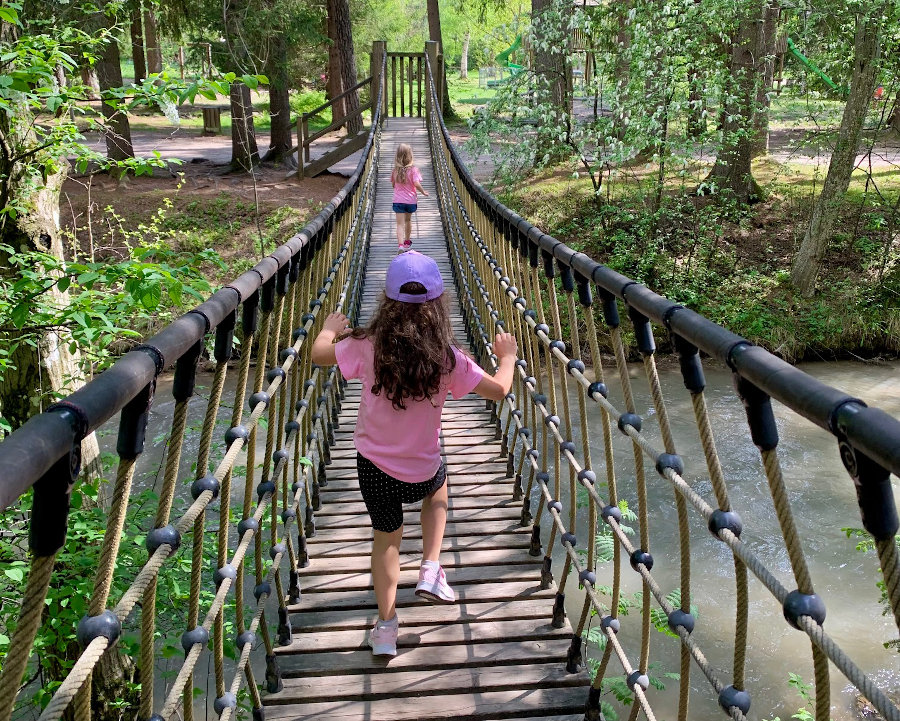 Dall’altra, la zona che è piaciuta di più ai nostri piccoli esploratori, il parco con percorsi di equilibrio ed esercizi motori. Qui la supervisione di un adulto è consigliata ma il divertimento (per tutti) è davvero assicurato! Proseguendo si incontra una zona dedicata a percorsi di equilibrio. Vi avvisiamo: i più piccoli li percorreranno all’infinito.