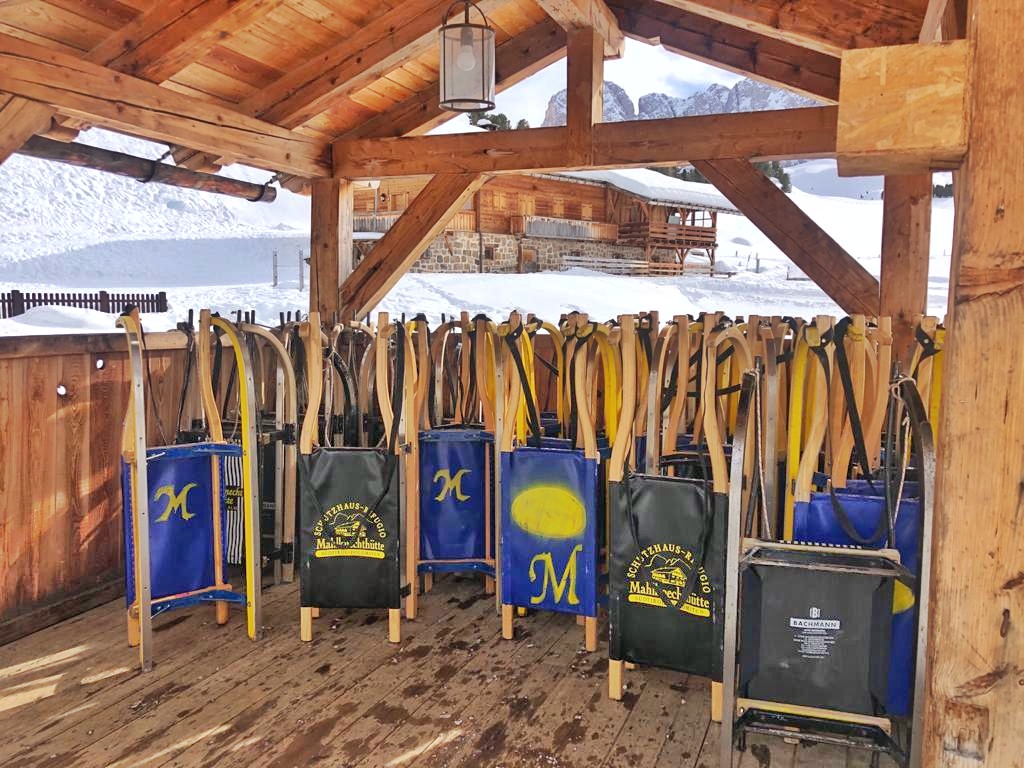 Finito di mangiare… si scende in slitta! Le slitte vengono messe a disposizione dal rifugio.