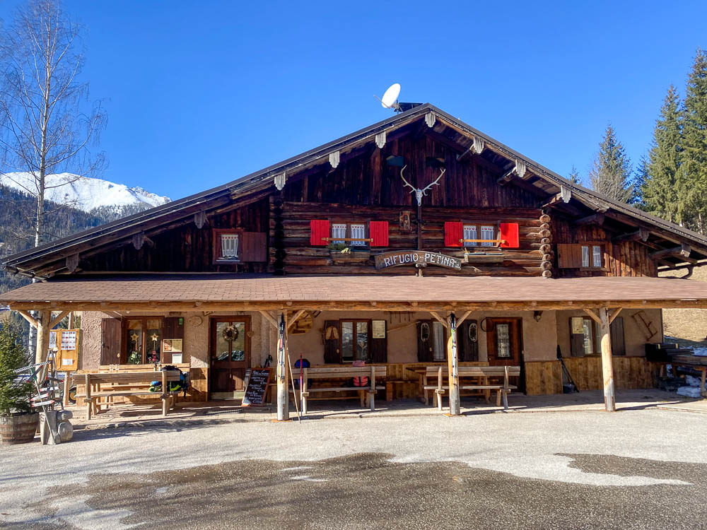 Il Rifugio Petina si trova a 1200 metri di altitudine, proprio sotto le Pale di San Martino, ed in particolare modo sotto le cime della Madonna, del Sass Maor e del Cimerlo. Meta meno conosciuta rispetto ad altri itinerari, ma molto interessante per la sua gestione cordiale e l’ottimo cibo. Nato come struttura rurale contadina è stato poi trasformata in locanda e punto di ristoro per poi diventare rifugio nel 1976. Intatta la sua tipica architettura fatta di tronchi di larice e pietra.