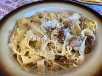 I piatti sono quelli della tradizione, per la maggior parte preparati in casa. Tagliatelle con porcini: orsetto alla trentina, polenta e Tòsela oppure con salsiccia, ma anche interessante la degustazione di primi (canederli, ravioli con le rape rosse, spätzle con burro fuso e speck croccante). Notevoli anche i gnocchi di ricotta. Da non dimenticare i dolci, anche quelli home made della mamma di Filippo.