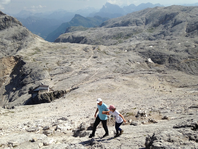 Una volta scesi dalla funivia inizia la passeggiata verso il rifugio, possibile anche con bambini dai 5 anni in poi con l’accorgimento di dotarli di scarponcini e portate sempre con voi uno spolverino perché può essere utile in caso di vento soprattutto a queste quote. La vista da quassù è veramente pazzesca (ecco un assaggio)! 🙂