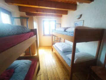 - svegliarsi al mattino con questa vista e questo silenzio non ha prezzo! Al piano superiore sono presenti delle deliziose stanze (alcune con letti a castello, altre matrimoniali) con bagno in comune (vista wow anche qui). In totale i posti letto sono 17. Su richiesta viene fornita anche la biancheria da letto. Per una notte speciale (magari senza pupi!) si può optare per la romantica stanza con caminetto in pietra, funzionante.