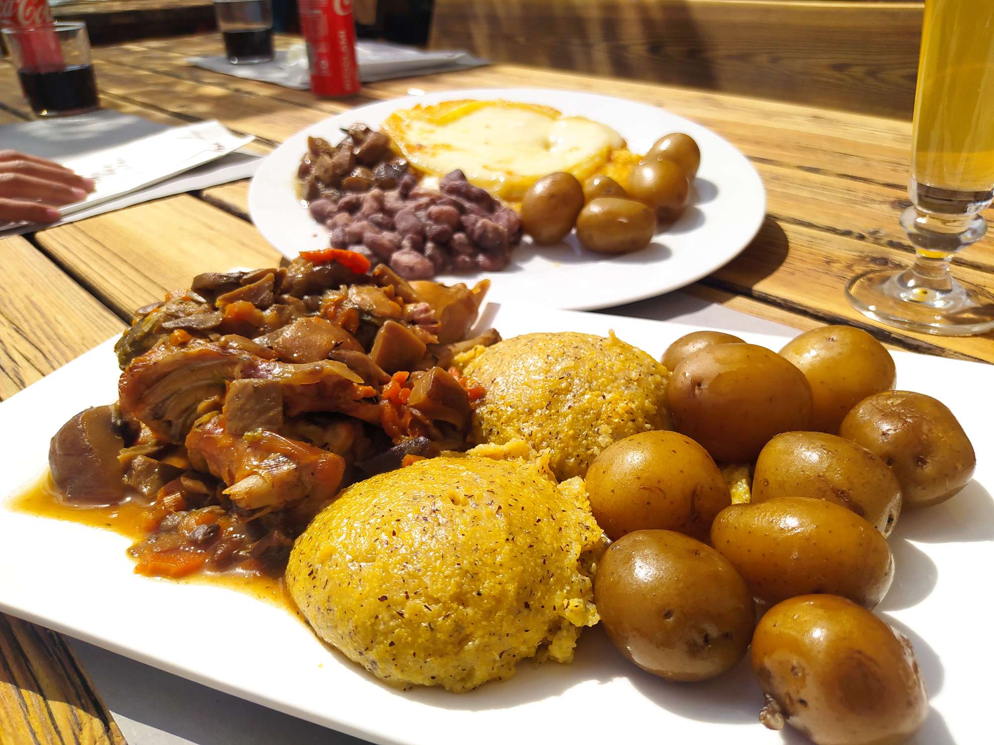 Nelle belle giornate vale la pena mangiare all’aperto, mentre all’interno un bel camino riscalda nelle giornate più fredde. La scelta è varia e spazia dal pesce, alla carne, ai salumi, ai piatti tipici della cucina trentina. Noi abbiamo provato gli strangolapreti, il coniglio alla cacciatora e il tortèl di patate. Tutto buono e in porzioni abbondanti. Servizio veloce, nonostante la grande affluenza. Presenti nel menu anche l’immancabile carne salada e l’antipasto di lago con polenta, sarde in saor, trota e salmerino, tra i piatti locali più apprezzati del Garda Trentino. Da provare anche i dolci: per noi un’ottima crostata con farina di frutta secca e marmellata di mirtilli. Ci hanno inoltre consigliato di tornare per provare il tiramisù al Picco Rosso, un liquore locale a base di fragoline di bosco e lamponi.