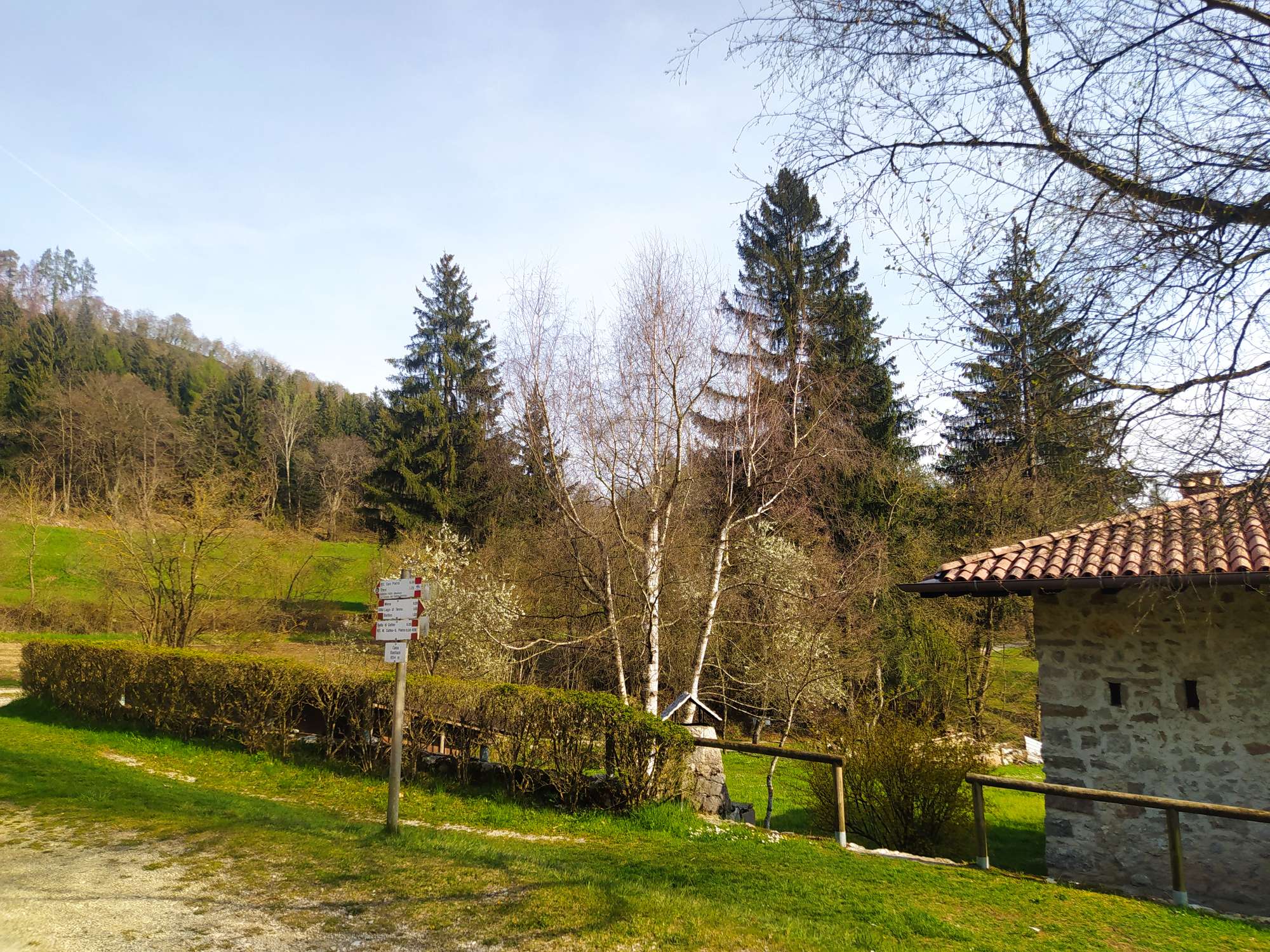 Ecco finalmente il portico d’ingresso del rifugio: un luogo ricco di storia, come testimonia l’antica chiesetta che domina il grande prato. Qui è possibile anche fermarsi per un picnic (ci sono alcuni tavoli con panche a disposizione di tutti). Molto apprezzato dai bambini il parco giochi, con altalene, scivolo e giochi a molla, posizionato proprio sotto la terrazza dove si mangia.