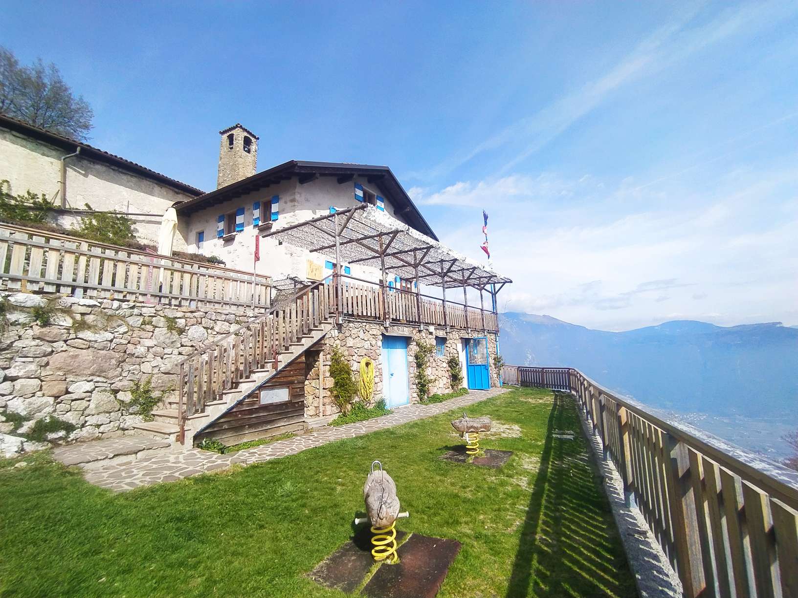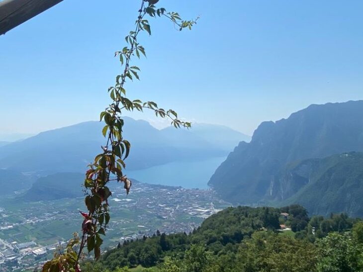 La terrazza, dicevamo… già perché qui il punto forte è proprio il panorama, con una vista meravigliosa su tutto l’Alto Garda e su una buona fetta del Lago di Garda. Da quassù si possono vedere il Monte Stivo, il Monte Altissimo, il Monte Baldo, la Rocchetta. Una vista strepitosa che renderà la sosta, accarezzati magari anche da un fresco venticello, un’esperienza indimenticabile e di vero relax.