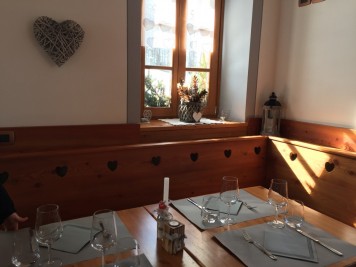 Tanti i bambini che oggi si divertivano in allegria, lontano dalla città ed in un contesto naturale davvero impagabile. Anche la struttura interna è molto bella ed accogliente, con grande cura per ogni dettaglio. Abbiamo ordinato tonnarelli con il ragù, polenta con spezzatino e un bis di primi (ravioli tipici della Val dei Mocheni con le verze e la ricotta affumicata e ravioli con pera e Casolet. Tutto molto buono, peccato per le quantità: eccetto i tonnarelli le porzioni sono un po’ scarse.