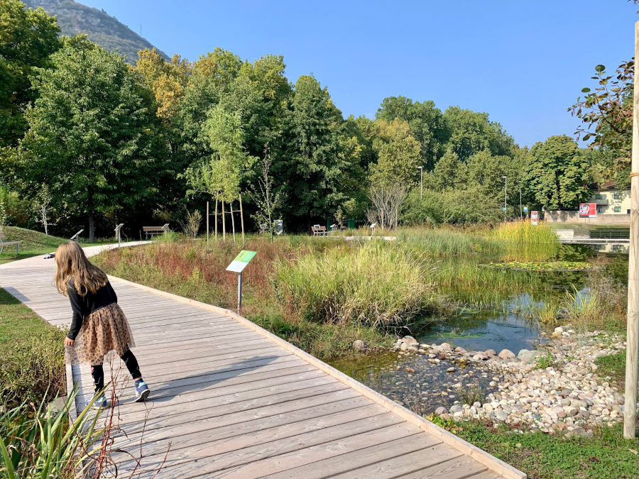 Un laboratorio a cielo aperto per lo studio, la conservazione naturalistica e le attività educative legate alla Citizen Science (tutte le informazioni del progetto QUI). L’intero percorso attraverso la biodiversità e accompagnato da interessanti cartelli informativi. Molto suggestivo vedere riflesso il palazzo delle Albere e l’imponente struttura del Muse nelle acque del laghetto.