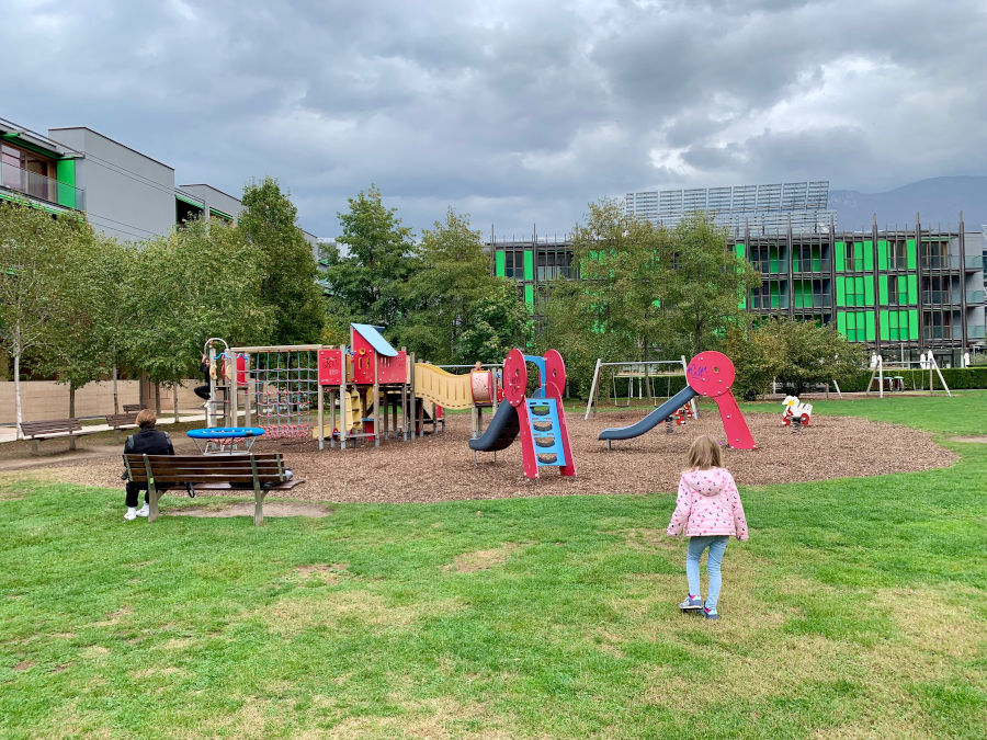 Ma torniamo a parlare del grande parco in erba attraversato da un infinità di stradine che permette l’utilizzo di biciclette e rollerblade. Inoltre ci sono due aree giochi con scivoli, altalene, dondoli, una funicolare e un castello con scale e reti per arrampicarsi. Un piccolo paradiso per i bambini, dove possono correre e divertirsi.