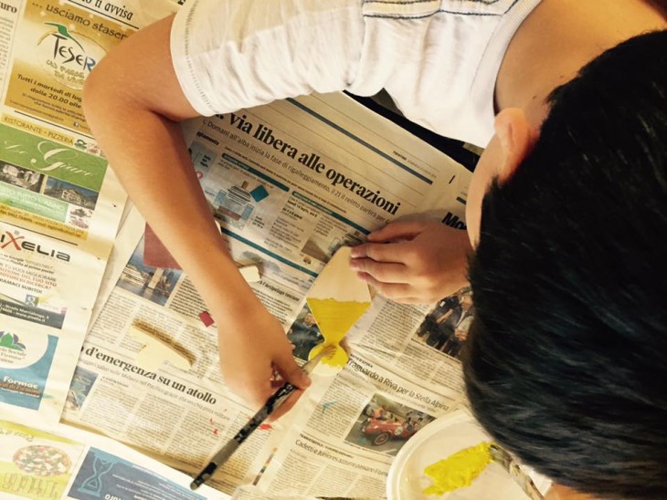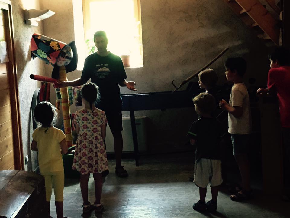 I bambini hanno levigato, colorato e incollato… poi in attesa che il colore si seccasse abbiamo fatto un giro per conoscere la storia di tutti gli spaventapasseri racchiusi in questo magico museo.