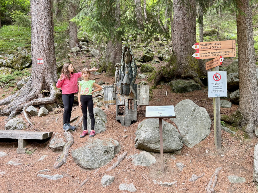 Dopo circa 10 minuti il percorso si interseca con i “Sentieri del Sole” una rete di sentieri escursionistici che si snodano lungo il versante soleggiato delle Alpi della Zillertal, tra Lutago e San Pietro.