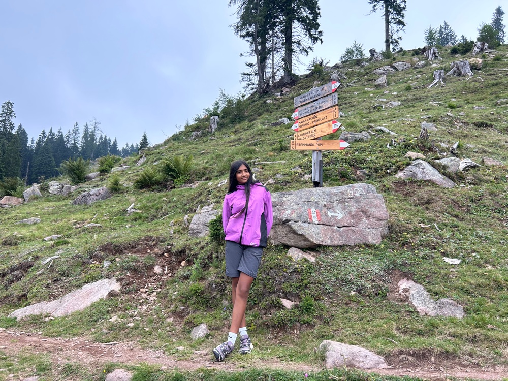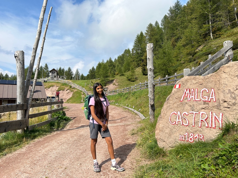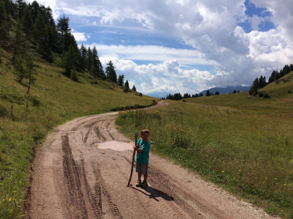Partiamo dicendo che la prima cosa da fare è raggiungere in auto il parcheggio Hofmahd. Si tratta di un grande parcheggio (gratuito) dislocato su entrambi i lati della strada, tra le gallerie che collegano la Val di Non con la Val d’Ultimo. Noi abbiamo lasciato l’auto al P2. Scesi dall’auto troverete tutti i cartelli con i vari sentieri ed itinerari che si diramano da qui. Alla Malga Castrin si può arrivare direttamente in mezz’oretta, oppure, come noi che desideravamo fare il giro delle malghe delle Maddalene, si può dirigersi inizialmente verso la Malga di Lauregno e proseguire da lì.