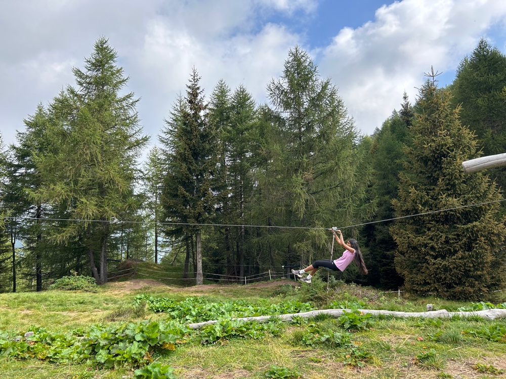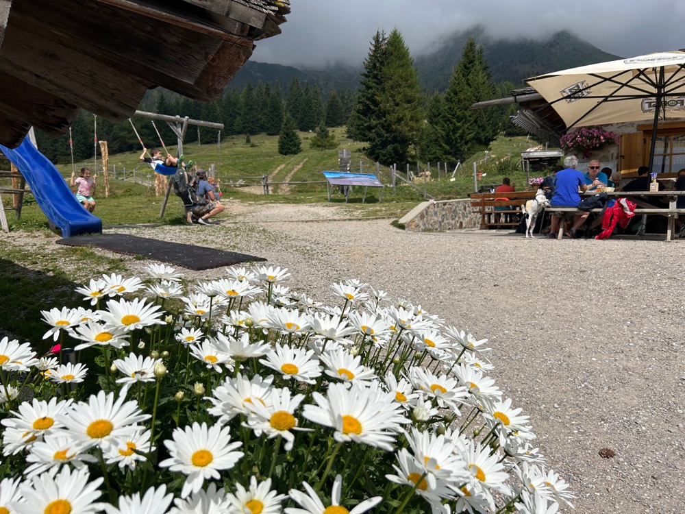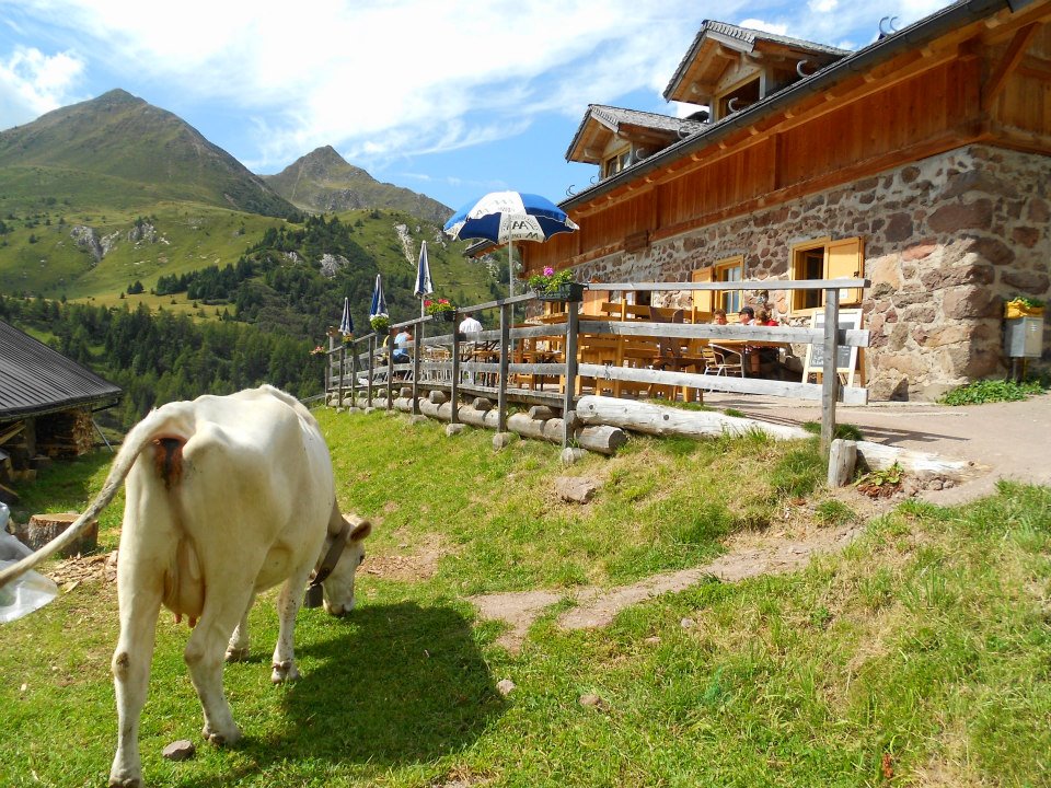 Qui a Malga Castrin, per la gioia dei bimbi, ci sono anche tante galline e 37 mucche da latte, che trascorrono la maggior parte della giornata e della notte libere al pascolo.