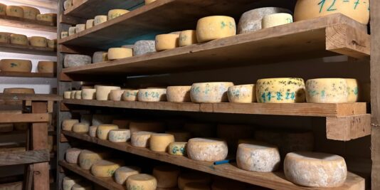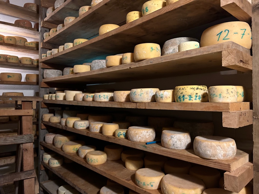 Le forme vengono girate e lavate e lasciate stagionare finché non sono pronte per essere vendute. Potete acquistarle direttamente qui nello spaccio, assieme al burro ed alla ricotta: guardate che angolino carino!