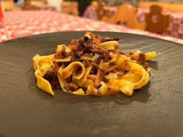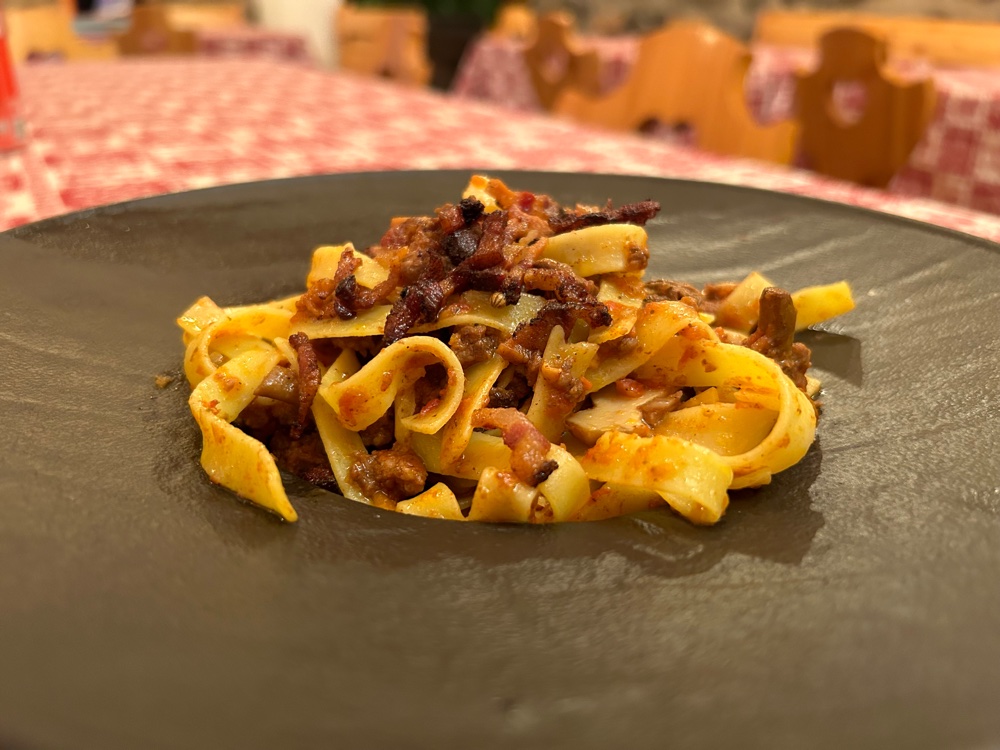 Passiamo al capitolo cibo. Un capitolo che merita decisamente spazio. Qui infatti abbiamo mangiato degli affettati che non temono paragoni (e di malghe e rifugi ne abbiamo provati tanti!), dovete assolutamente provarli! La cucina è quella classica di montagna, con un’occhio di riguardo per la presentazione: sapori buoni e consistenze perfette, tutto divino. Noi abbiamo preso le tagliatelle del malgaro e la polenta con i funghi, ma abbiamo sentito commenti più che positivi anche dal tavolo accanto per il classico uova speck e patate e per i canederli al burro.
