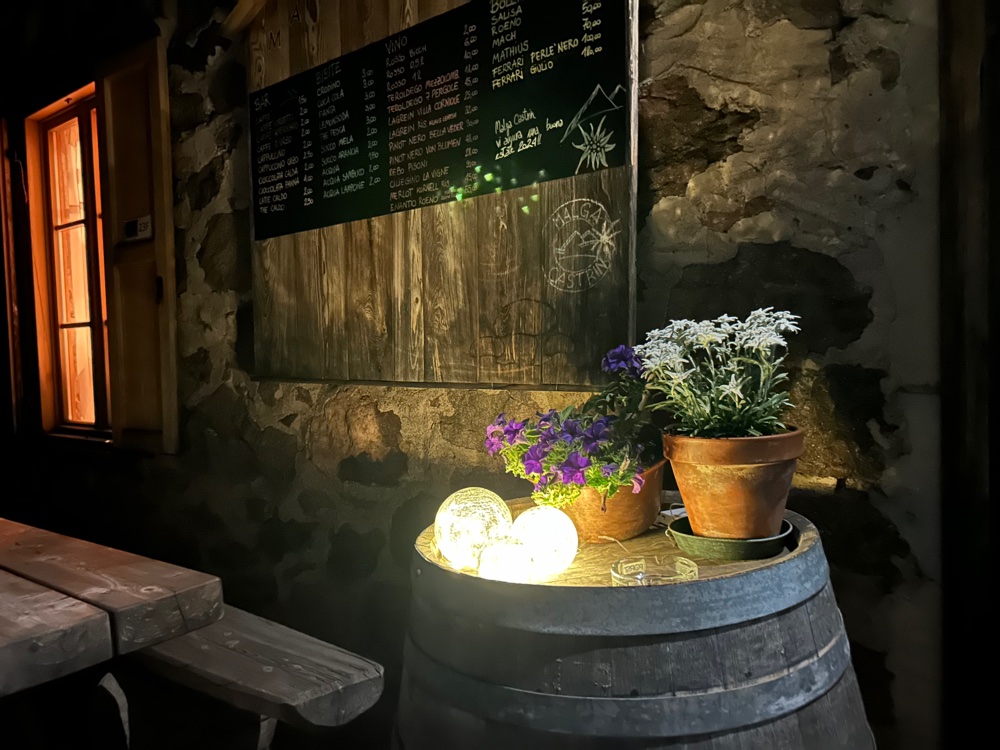 Da non perdere, specie dopo una bella escursione, il piatto del malgaro, che racchiude tutto il meglio della cucina. Se invece siete amanti della carne con la C maiuscola, oltre al solito spezzatino, Manuel potrà indirizzarvi su qualche succosa bistecca, cotta alla griglia. Per concludere i dolci, buonissimi e in porzioni generose: dalla crostata con ricotta e frutti di bosco, alla cheesecake, alla sacher fino ad arrivare alla torta Castrin, una delizia a base di mele da gustare calda. Se poi volete anche un grappino, qui la scelta si fa ardua, con un’infinità di varianti tra cui scegliere.